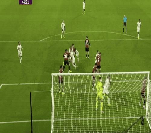 第45分钟,利物浦获得角球,范迪克从人群中冲了出来,前点后蹭,为利物浦扳回一城。